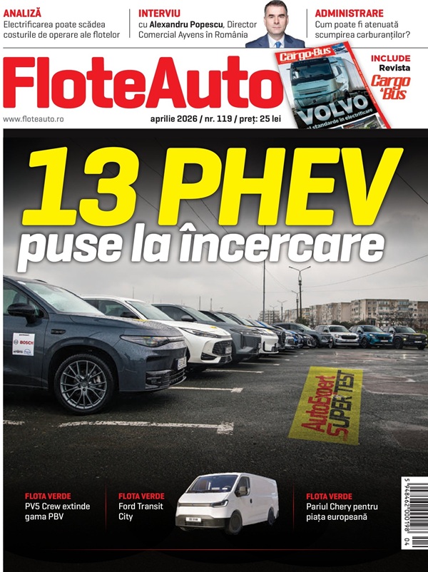 A apărut numărul 119 al revistei FLOTE AUTO, aprilie 2026, cu un conţinut care îmbină, ca de obicei, testele şi prezentările de autoturisme şi utilitare, cu articole şi interviuri referitoare la finanţarea, administrarea şi asigurarea flotelor.