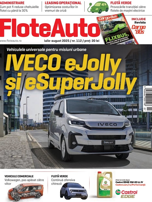 A apărut numărul 112 al revistei FLOTE AUTO, iulie – august 2025, cu un conţinut care îmbină, ca de obicei, testele şi prezentările de autoturisme şi utilitare, cu articole şi interviuri referitoare la finanţarea, administrarea şi asigurarea flotelor.