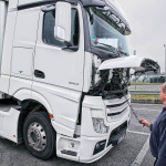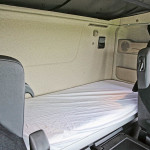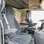 Atunci când a apărut cabina MegaSpace pe primul Actros, a fost o noutate eliminarea tunelului cardanic, o performanță obținută până atunci doar de Renault Magnum (și păstrată și astăzi pe gama T). 1853 a păstrat podeaua plată dar dacă nu optați pentru aceasta înălțimea cabinei se va reduce de la 2,50 la 2,30; alegerea cabinei pornește de la dimensiuni mai scunde și culminează cu GigaSpace-ul, testat aici. Astfel dotat, acest Mercedes devine o navă-amiral perfectă pentru cele 8 mii kilograme de masă dar oferă în contrapartidă un confort de primă clasă. Găsim adecvate, conform tradiției casei, dotările de siguranță, începând cu detectorul de oboseală, cu senzorii de promximitate și cu sistemul automat de frânare de urgență de generația a treia. Faptul că au existat deja două generații anterioare spune multe despre avantajul tehnologic al Mercedes față de concurență.