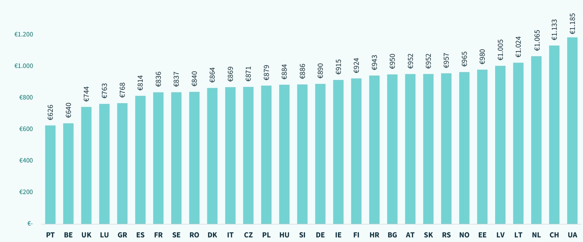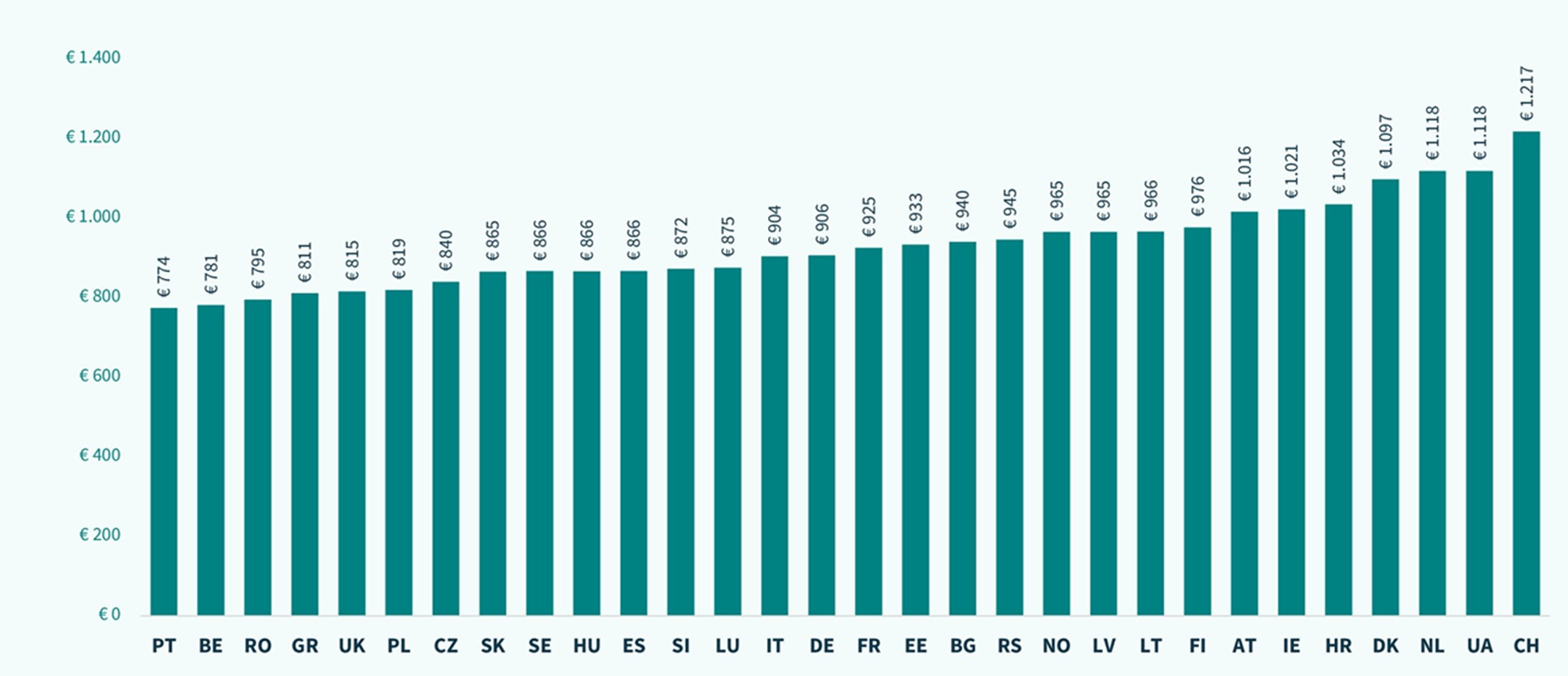 - Finanțare – Leasingul operațional al unei mașini este cel mai scump în Elveția (1.217 euro/lună) și cel mai ieftin în Portugalia (774 euro/lună), Belgia (781 euro/lună) și România (795 euro/lună).