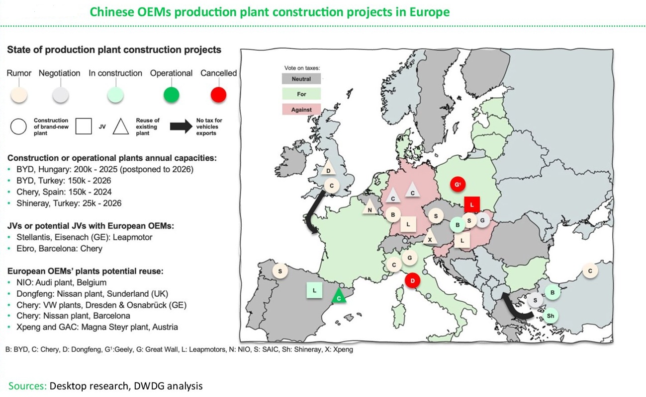 Companiile chineze înființează, de asemenea, fabrici în Europa, cum ar fi BYD în Ungaria, Chery în Spania și producătorul Linglong în Serbia. Această tendință marchează trecerea de la producția orientată spre export la producția locală pentru piața europeană, subliniază autorii studiului.