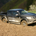 Opțional se oferă și una automată cu șapte rapoarte. Pe teren accidentat, motorul de 2,3 litri se comportă admirabil. Niciun moment nu ne-a dat senzația că ar avea nevoie de mai mult cuplu. Atunci când am folosit reductorul pe pante abrupte, Navara urca fără să gâfâie în treapta a treia și a patra. Totuși, ne-am abținut să dăm mai mult. O altă surpriză a fost dată de suspensia spate care chiar este mai confortabilă decât ce știm despre