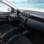Planșa de bord este mai bine desenată și mai judicios proporționată și compartimentată. Spre deosebire de prima generație, pe planșa noului Duster se văd cinci aeratoare rotunde, identice. Acestea creează astfel un tot unitar plăcut, nu ca în alte cazuri în care avem patru aeratoare cu trei desene diferite. În dreptul pasagerului din dreapta a apărut, pe planșa de bord, o policioară mică ideală pentru a-și pune telefonul mobil. Se știe, deja, că telefonul mobil este cel mai apropiat accesoriu al unei persoane. Prin urmare, poziționarea acestuia pe o policioară cauciucată este binevenită fiind ușor de accesat și la vedere. Pe consola centrală, poziționat mai sus și puțin rotit spre șofer, este sistemul MediaNav care suportă acum și funcții de screen mirroring cu telefonul mobil atât prin Apple CarPlay cât și prin Android Auto.