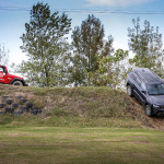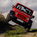 Am experimentat, pe viu, ce înseamnă o zi de Jeep Owners Group într-un amplu test cu toată gama Jeep pe poligonul de motocros de la Ciolpani, de lângă București. Terenul accidentat, noroiul și zonele de încrucișări de punți au pus la încercare atât mașinile cât și șoferii. Astfel, de la micul Jeep Renegade și până la Grand Cherokee am testat aptitudinile mașinilor de a trece peste obstacolele întâlnite. Desigur, cel mai eficient este imbatabilul Wrangler Rubicon, singurul off-road-er de pe piață dotat cu de serie cu diferențiale blocante față-spate, bară stabilizatoare decuplabile și un super-reductor de 4:1 (față de 2,7:1 cât se practică în general).