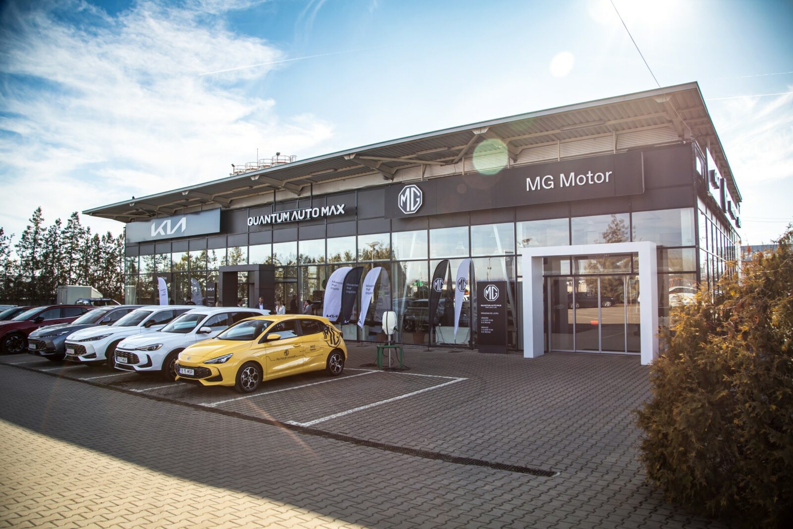 În noul showroom, din strada Ștrandului nr 48, vor fi comercializate în premieră mărcile Kia, MG, Isuzu și Maxus. Suprafața de expunere este generoasă, de peste 500 mp. Service-ul modern, cu dotări de top, are 8 posturi de lucru pentru reparații mecanice, 2 posturi pentru reparații electrice, 2 posturi de lucru de tinichigerie și cabină de vopsitorie.