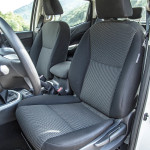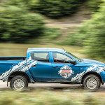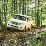 Deși și-a schimbat puțin aspectul, sub caroserie rămâne același L200 de acum aproape un deceniu. Nu este un lucru rău pentru că, din punct de vedere tehnic, este una dintre cele mai solide mașini din comparativ. Modelul testat era cu transmisie manuală de șase trepte și motorizare de 154 CP. În schimb era cel mai ușor din test, singurul sub două tone masă proprie. Varianta testată nu avea sistemul Super Select, ceea ce-l punea pe picior de egalitate cu celelalte mașini. La interior era un nivel de echipare destul de aproape de bază, fără prea multe accesorizări cum le-am avut într-un test de la începutul anului. Dar chiar și în această dotare mai de bază tot era suficient echipat, oferind spații de depozitare, USB pentru instalația audio și aer condiționat. Unele sisteme erau mai rudimentare, cum ar fi cel pentru activarea clapetei de recircularea aerului din habitaclu, care era acționat mecanic. Eficient, sigur în exploatare, dar nu foarte modern ca aspect. Spațiu foarte mare la picioare pentru banchetă nu are, dar este totuși satisfăcător. Unde a strălucit însă, a fost pe teren accidentat, în mare parte datorită anvelopelor cu un profil special. Dar tot acestea i-au adus și un dezavantaj de confort, pentru că au taloanele mai dure decât anvelopele normale pentru asfalt.