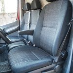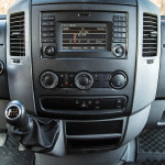 Pentru interior, vehiculul de test era dotat cu tot ce are nevoie un vehicul lung-curier. Astfel, pe lângă instalația audio cu două difuzoare și comenzi pe volan, computer de bord și alte câteva elemente de confort, avea și cea mai dorită opțiune pentru scaunul șoferului: amortizor pneumatic în funcție de greutate. Dacă la camioane, autobuze și alte utilaje aceasta este frecvent întâlnită, la furgoane puțini se gândesc să o comande. Ei bine, utilitatea acestei dotări este foarte apreciată în orașe. Acolo unde aveți deseori de traversat șine de tramvai, de abordat diverse denivelări sau gropi, coloana vertebrală a șoferului nu va avea de suferit.